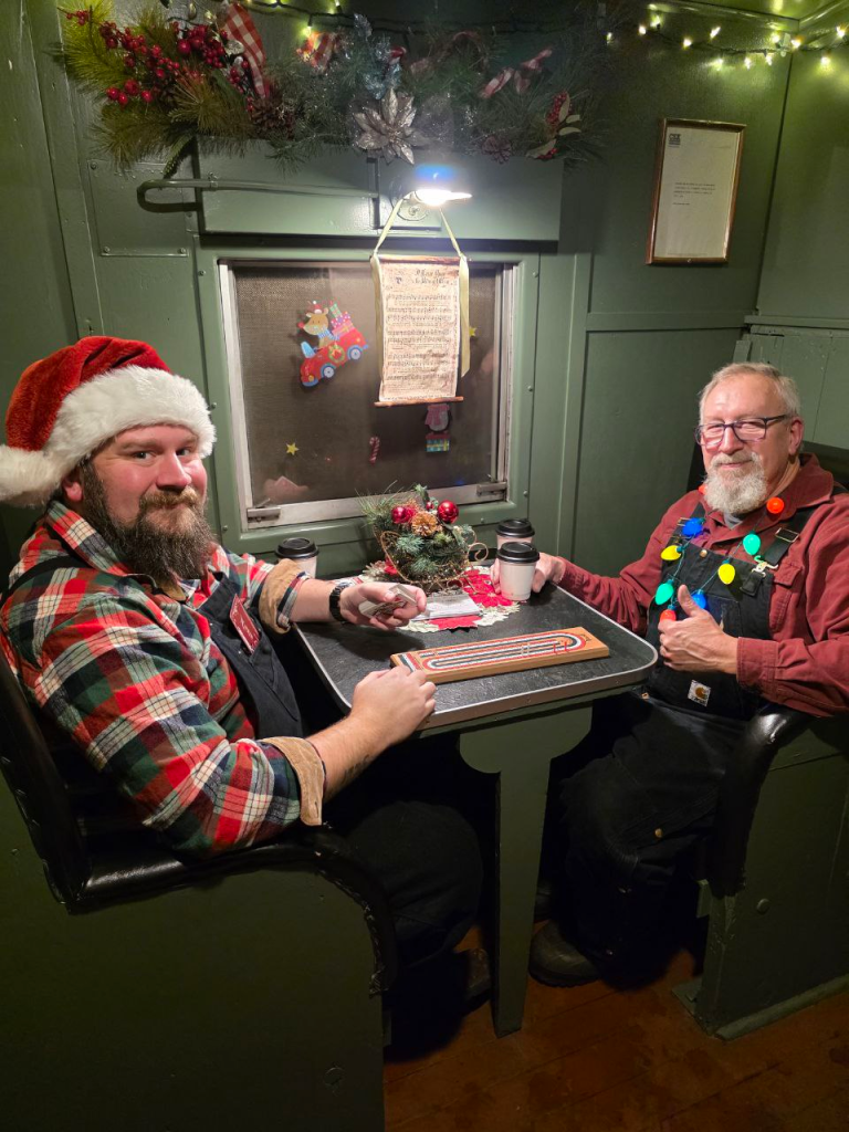As we stood within the Steam Railroading Institute’s Visitors Center, it was hard not to feel the buzz of holiday excitement that emanated from the crowd of people that were browsing the gift shop, snapping selfies in front of a Christmas themed wall, or waiting in the will-call line, like us, to pick up their tickets for the evening ride.